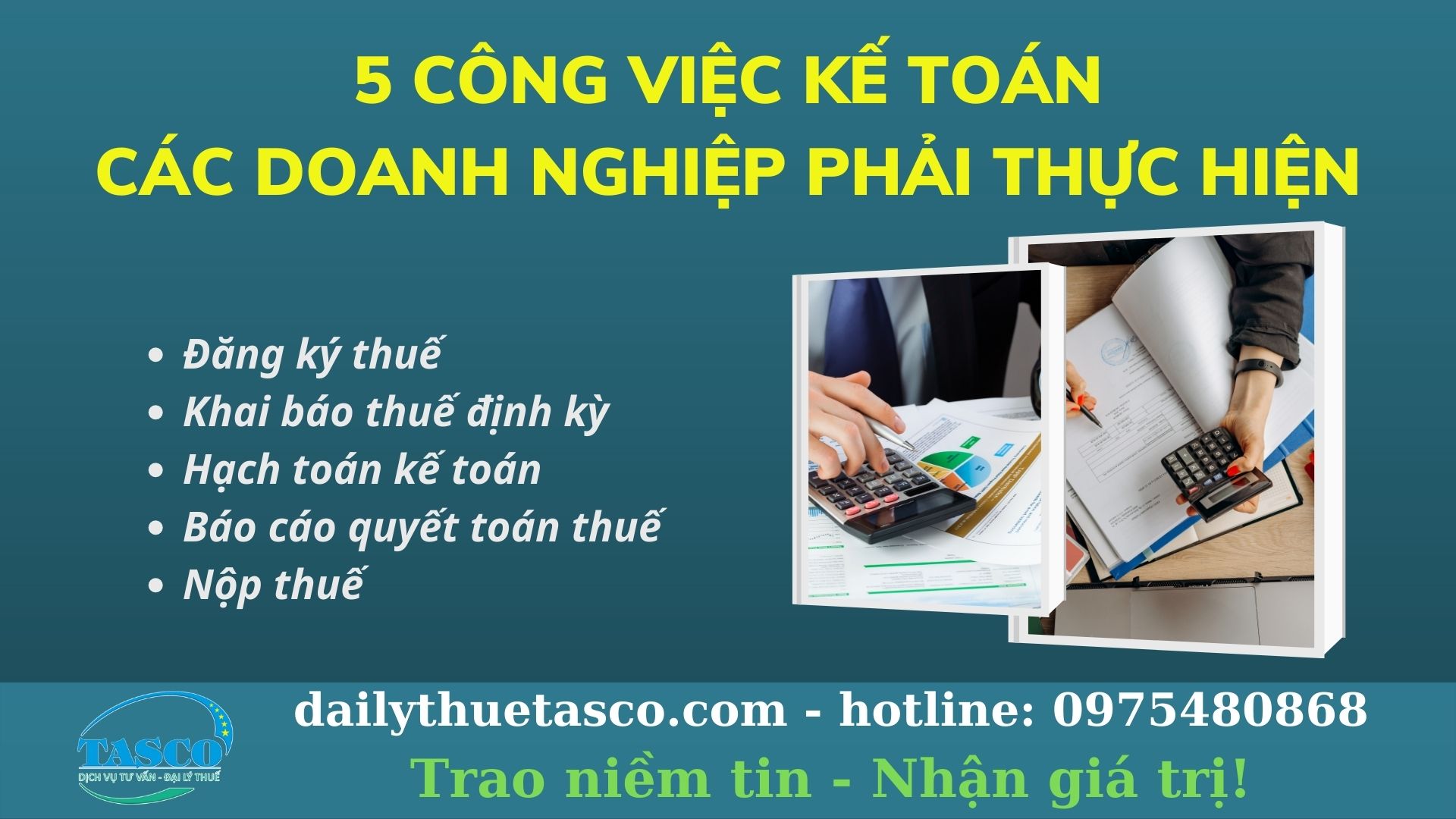 Kế toán là ngành nghề đòi hỏi sự chính xác, tỉ mỉ đến từng chi tiết. Dưới đây Tasco sẽ chia sẻ về 5 công việc kế toán các doanh nghiệp phải thực hiện