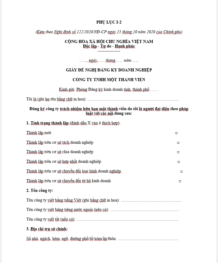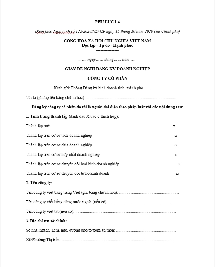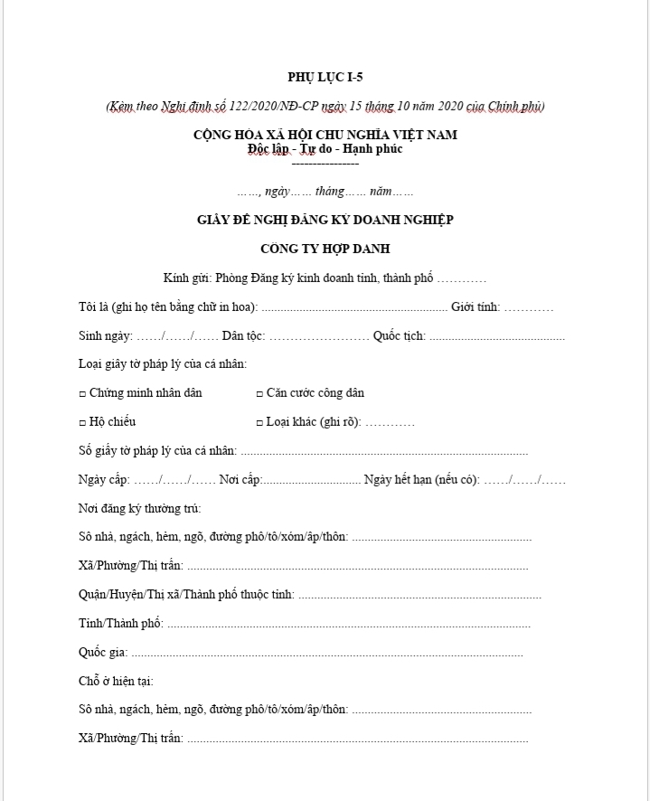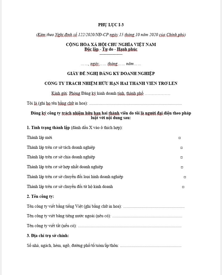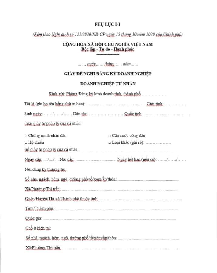5 MẪU GIẤY ĐỀ NGHỊ ĐĂNG KÝ DOANH NGHIỆP MỚI NHẤT