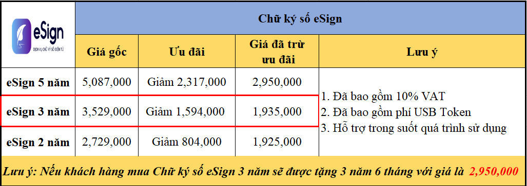 2. Bảng giá chữ ký số MISA eSign: