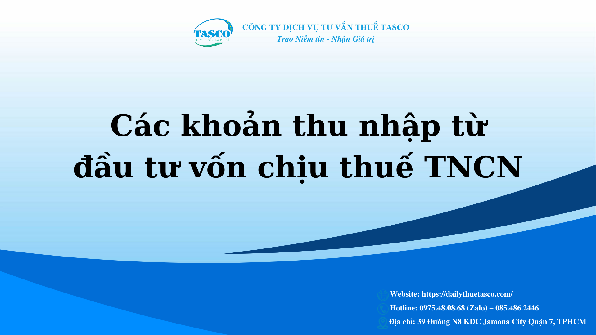 Đại lý thuế Tasco chia sẻ đến quý doanh nhân, doanh nghiệp về các khoản thu nhập từ đầu tư vốn chịu thuế TNCN.