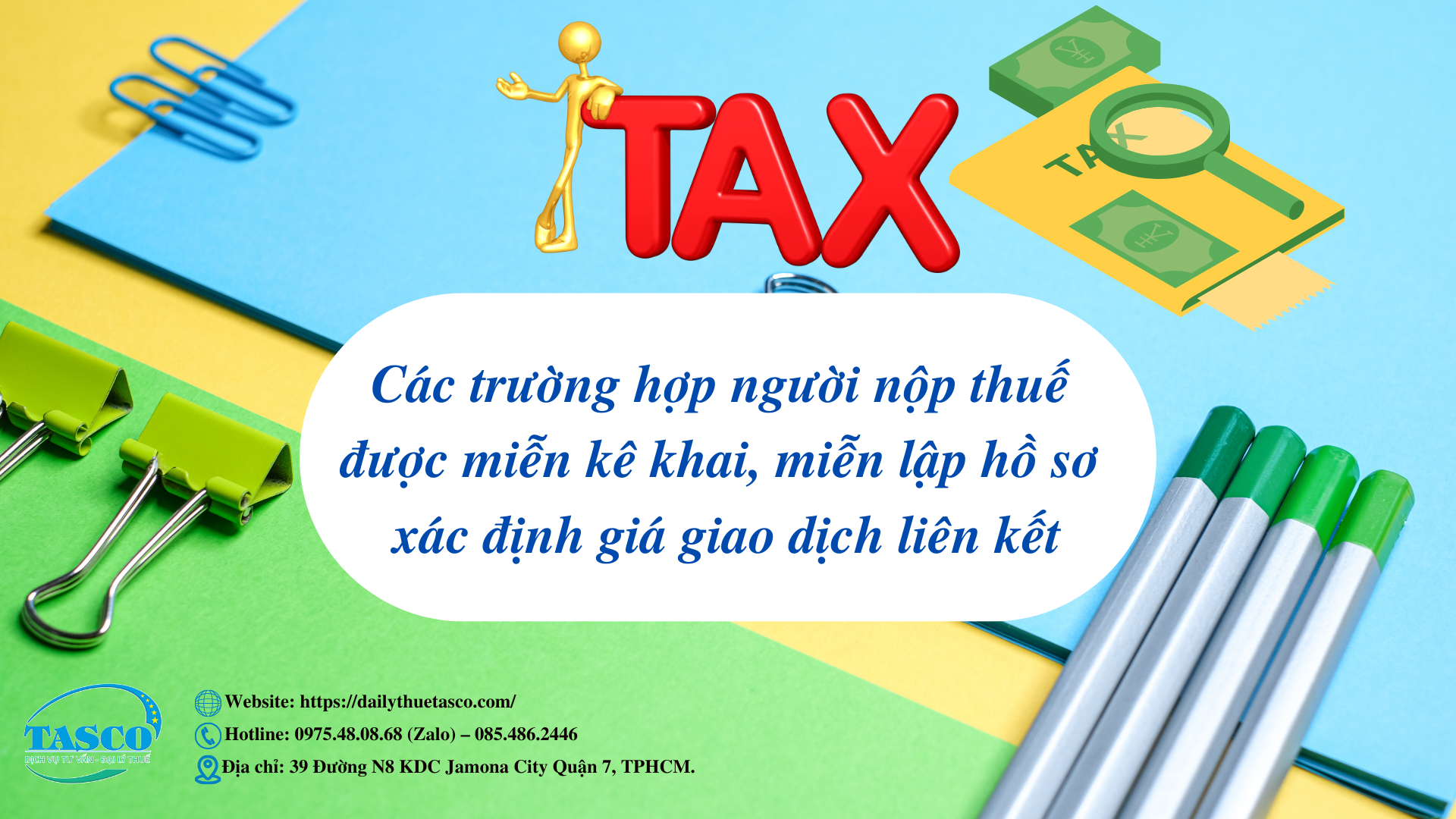 Đại lý thuế Tasco chia sẻ đến quý doanh nghiệp, doanh nhân về các trường hợp người nộp thuế được miễn kê khai, miễn lập hồ sơ xác định giá giao dịch liên kết.