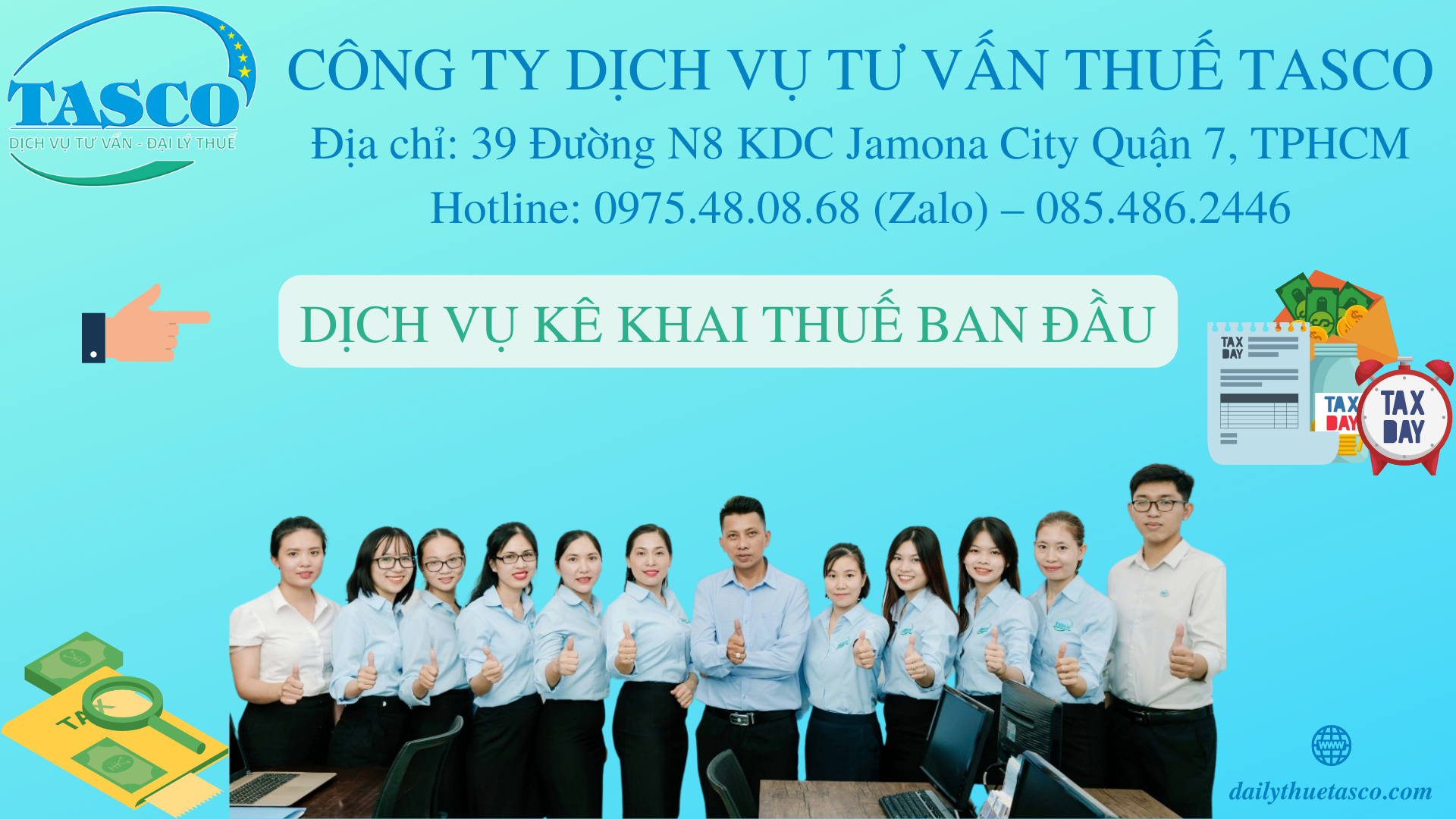 ⇒ Do đó để quý khách hàng có thể tập trung vào việc kinh doanh, TASCO đã cho ra mắt dịch vụ khai thuế ban đầu cho doanh nghiệp vừa thành lập, có thể giúp quý khách hàng tiết kiệm thời gian và tránh đi những rủi ro, sai sót.