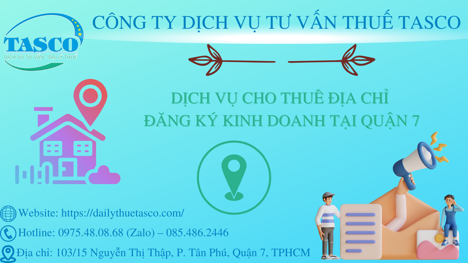 Nếu quý doanh nghiệp đang tìm kiếm địa chỉ để thành lập chi nhánh hoặc địa điểm kinh doanh hoặc chưa có địa điểm kinh doanh ở vị trí như ý thì liên hệ Tasco để có địa chỉ kinh doanh với chi phí thật tiết kiệm tại quận 7 chỉ từ 500k/tháng.