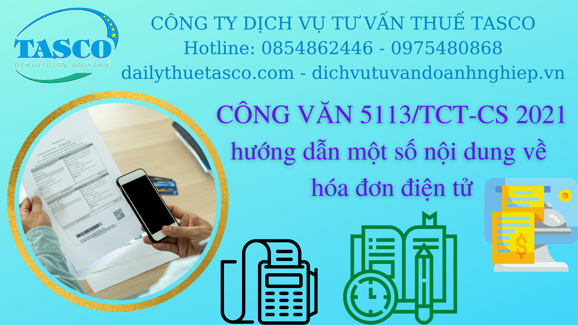 Công văn 5113/TCT-CS 2021 hướng dẫn một số nội dung về hóa đơn điện tử