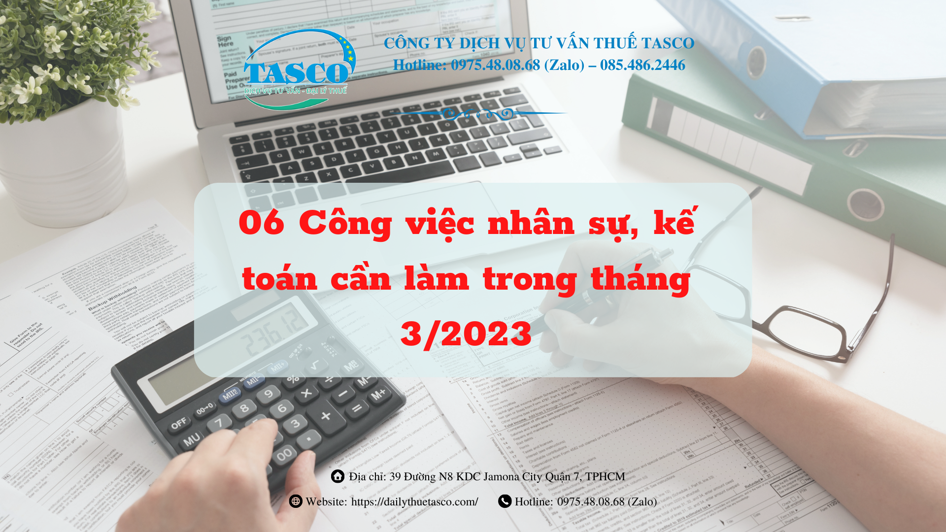 Đại lý thuế Tasco chia sẻ đến quý doanh nhân, tổ chức, doanh nghiệp các công việc mà nhân sự, kế toán cần làm trong tháng 3/2023