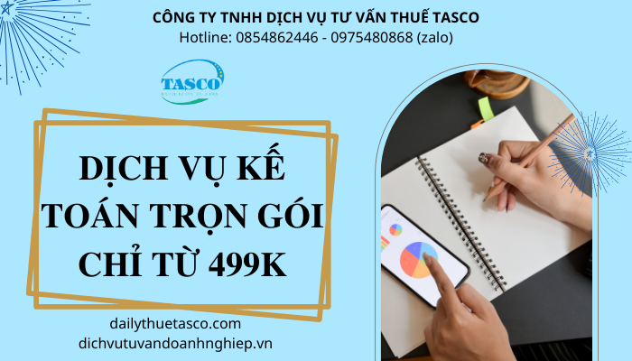 Đại lý thuế TASCO với phương châm kinh doanh “TẬN TÂM – TRÁCH NHIỆM – CHUYÊN NGHIỆP”, luôn đảm bảo mang đến cho quý khách hàng những dịch vụ về tài chính, kế toán và thuế với chất lượng hoàn hảo. Hơn 200 khách hàng khi sử dụng dịch vụ tại TASCO đều cảm thấy rất hài lòng với chất lượng dịch vụ tại đây. Còn chần chờ gì nữa, nếu quý khách hàng đang có nhu cầu về dịch vụ kế toán trọn gói, hãy liên hệ ngay đến Đại lý thuế TASCO, chúng tôi đảm bảo sẽ cung cấp cho bạn những giải pháp tối ưu nhất cho doanh nghiệp về kế toán thuế với chi phí hợp lý cùng chất lượng dịch vụ hoàn hảo.