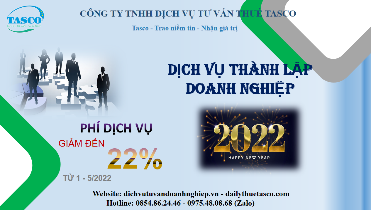 Đặc biệt giảm 22% phí dịch vụ thành lập doanh nghiệp trọn gói tại TASCO từ 1-5/2022