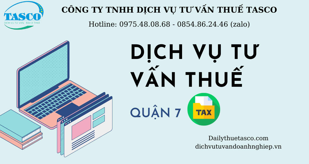Hãy đến với DỊCH VỤ TƯ VẤN THUẾ TẠI QUẬN 7 của Đại lý thuế TASCO, mọi vấn đề của quý doanh nhân sẽ được giải quyết với chất lượng dịch vụ mà đội ngũ chuyên viên TASCO mang lại. Với nhiều năm kinh nghiệm trên lĩnh vực tư vấn pháp lý doanh nghiệp, TASCO sẽ giải quyết trong thời gian nhanh nhất, với chi phí tiết kiệm nhất cho quý doanh nhân.