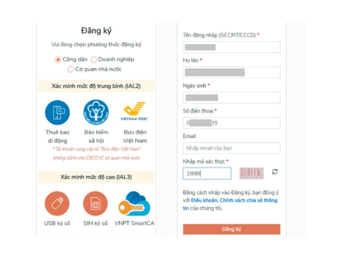 1. Hướng dẫn đăng ký tài khoản trên Cổng dịch vụ công quốc gia
