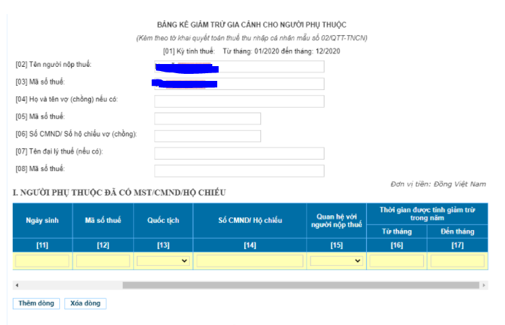 [30]: Cho những người phụ thuộc được giảm trừ: Hệ thống tự động tính.