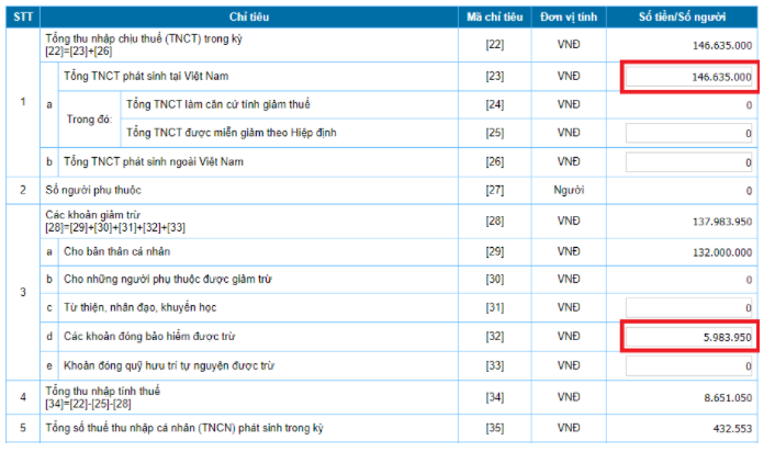 [22]: Tổng thu nhập chịu thuế trong kỳ: