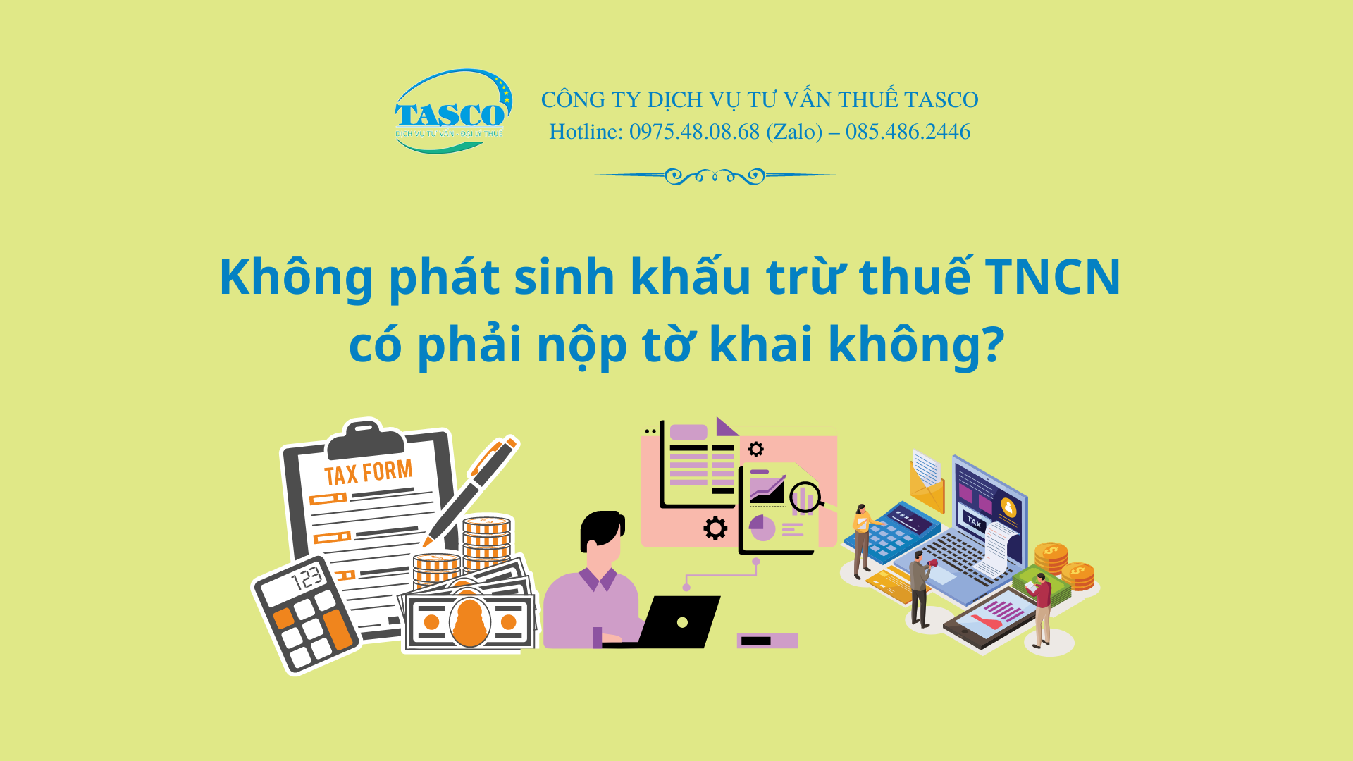 Người nộp thuế phải khai thuế TNCN theo tháng hoặc theo quý. Trường hợp không phát sinh khấu trừ thuế TNCN có phải nộp tờ khai không? Đại lý Thuế Tasco tìm hiểu về vấn đề này qua bài viết bên dưới.