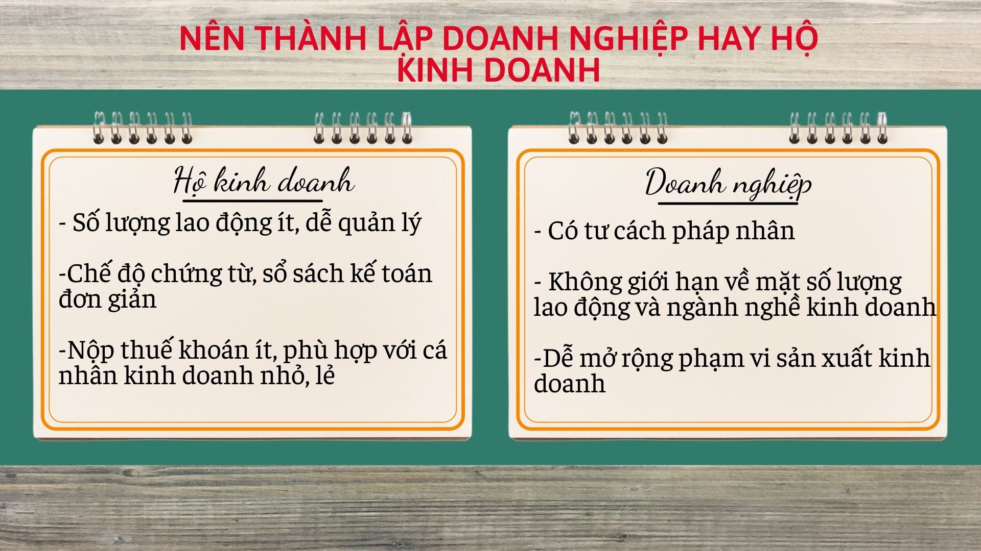 NÊN THÀNH LẬP DOANH NGHIỆP HAY HỘ KINH DOANH CÁ THỂ