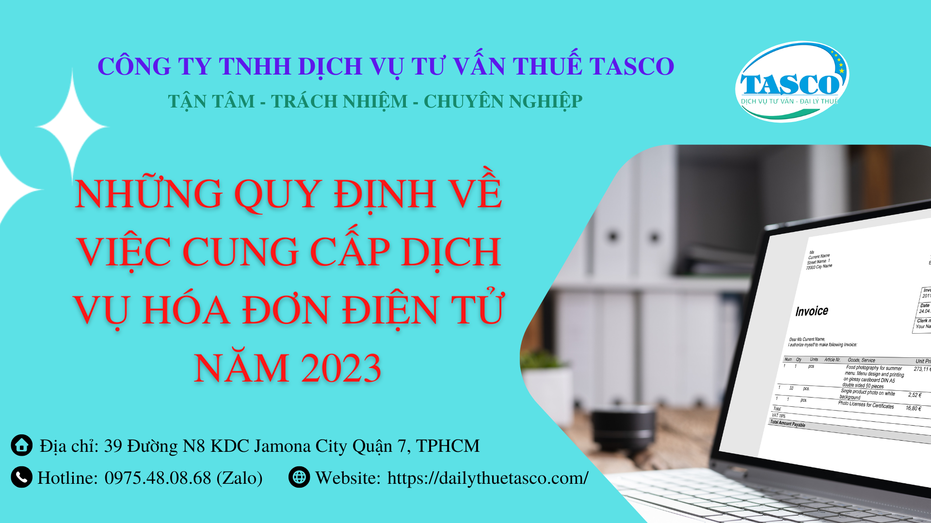 Pháp luật đã có những quy định về việc cung cấp dịch vụ hóa đơn điện tử năm 2023 và các thành phần định dạng hóa đơn điện tử. Sau đây Đại lý thuế Tasco sẽ cung cấp đến quý doanh nhân về các thông tin quan trọng có liên quan.