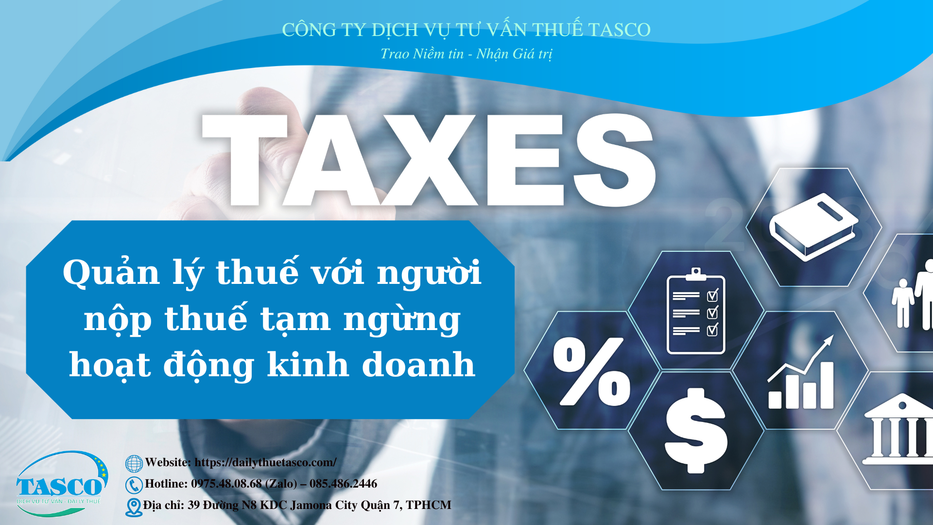 Đại lý thuế Tasco cung cấp đến quý doanh nhân những quy định về quản lý thuế với người nộp thuế tạm ngừng hoạt động kinh doanh.