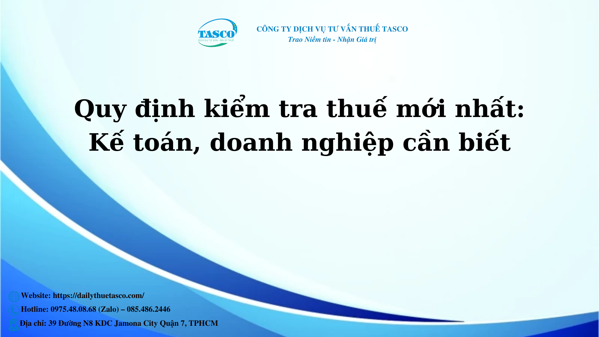 Kiểm tra thuế bao gồm hoạt động kiểm tra hồ sơ thuế tại trụ sở cơ quan thuế và kiểm tra tại trụ sở người nộp thuế. Đại lý thuế Tasco cập nhật đến quý doanh nhân, doanh nghiệp về quy định kiểm tra thuế mới nhất.