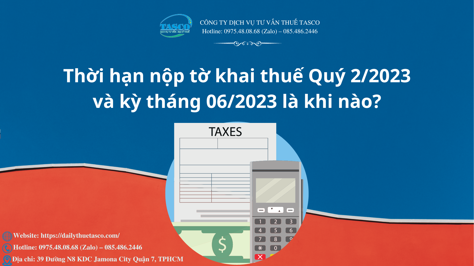 Đại lý thuế Tasco chia sẻ đến quý doanh nghiệp thời hạn nộp tờ khai thuế Quý 2/2023 và kỳ tháng 06/2023.