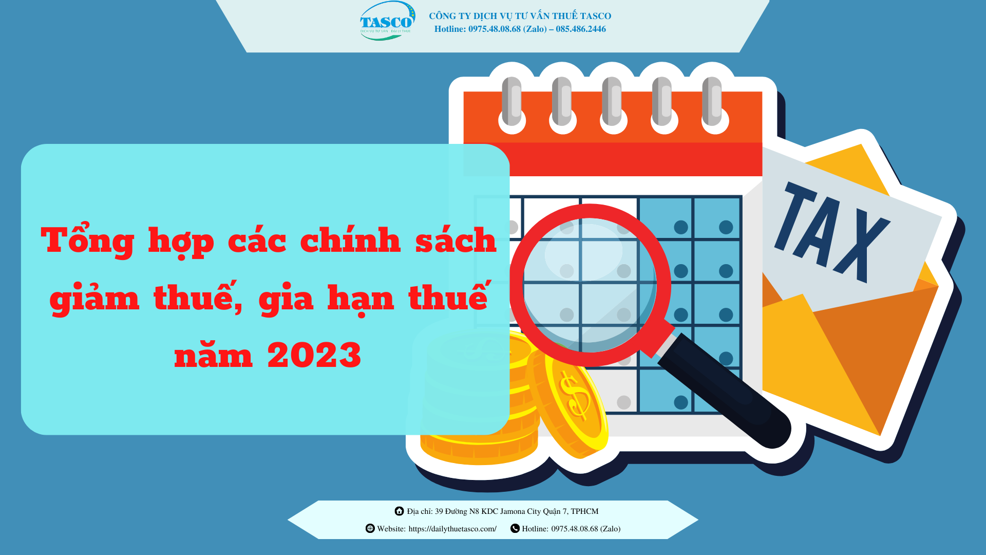 Trước những khó khăn của nền kinh tế hiện nay, nhà nước đã ban hành nhiều chính sách giảm thuế, gia hạn thuế. Đại lý thuế Tasco tổng hợp các chính sách giảm thuế, gia hạn thuế năm 2023 giúp quý doanh nhân và doanh nghiệp nắm rõ các thông tin nhanh chóng và chính xác.